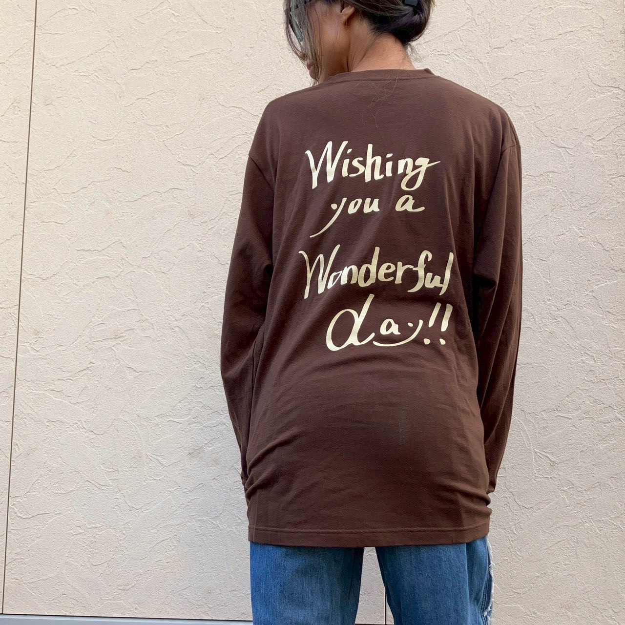 Wishing you a Wonderful day ロンT(ブラウン)Ssize