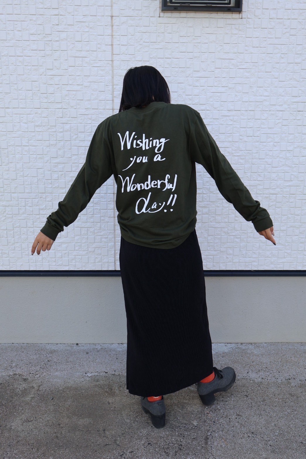 Wishing you a Wonderful day ロンT(カーキ)Lsize