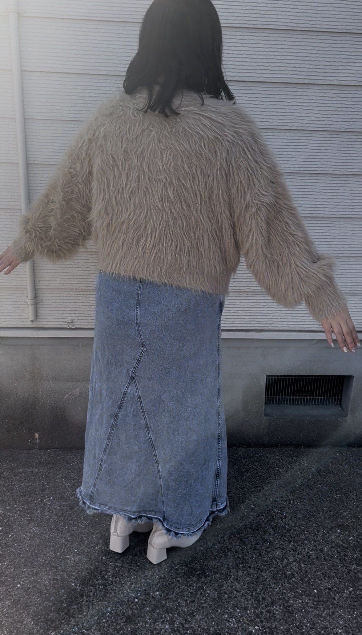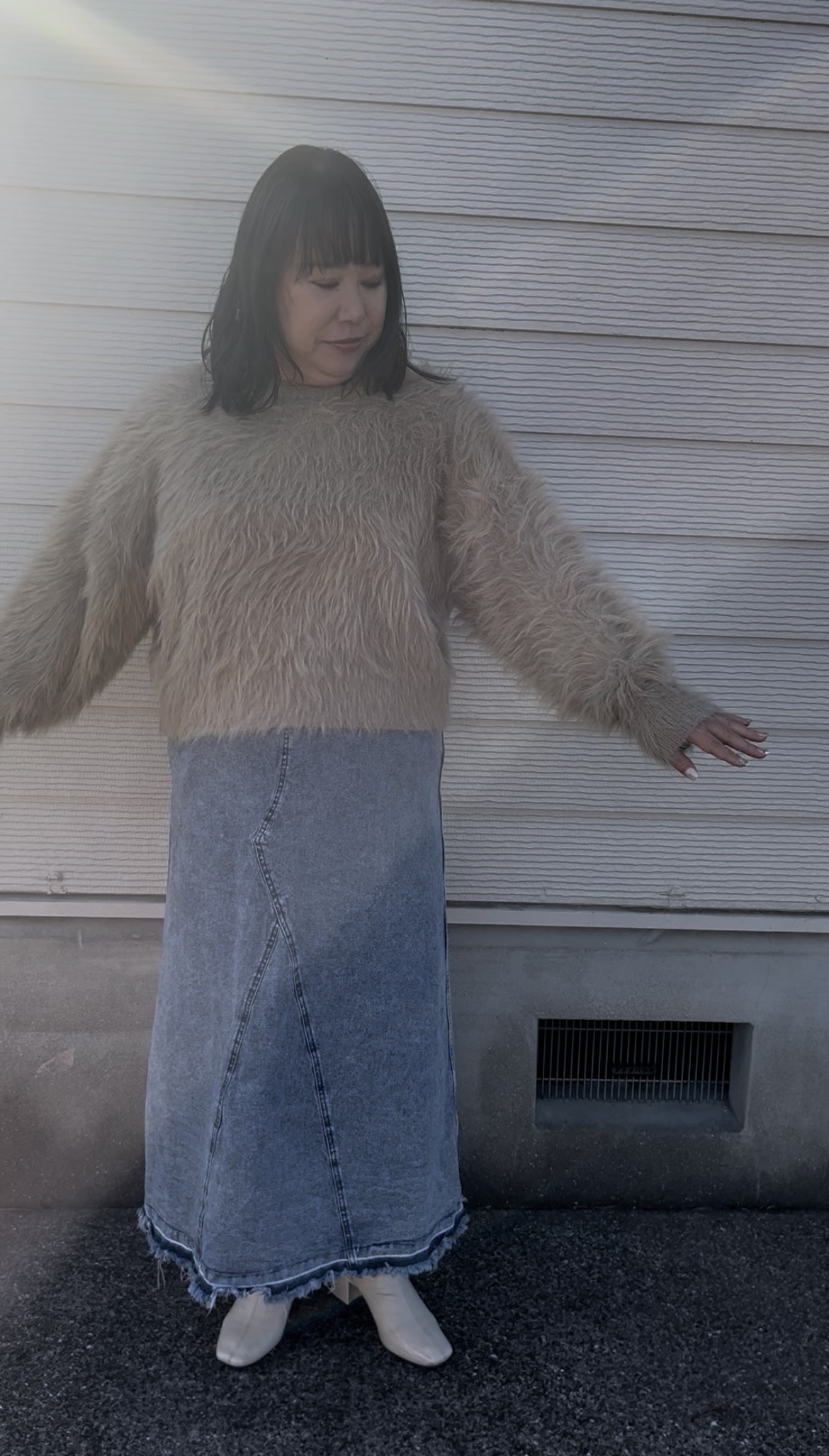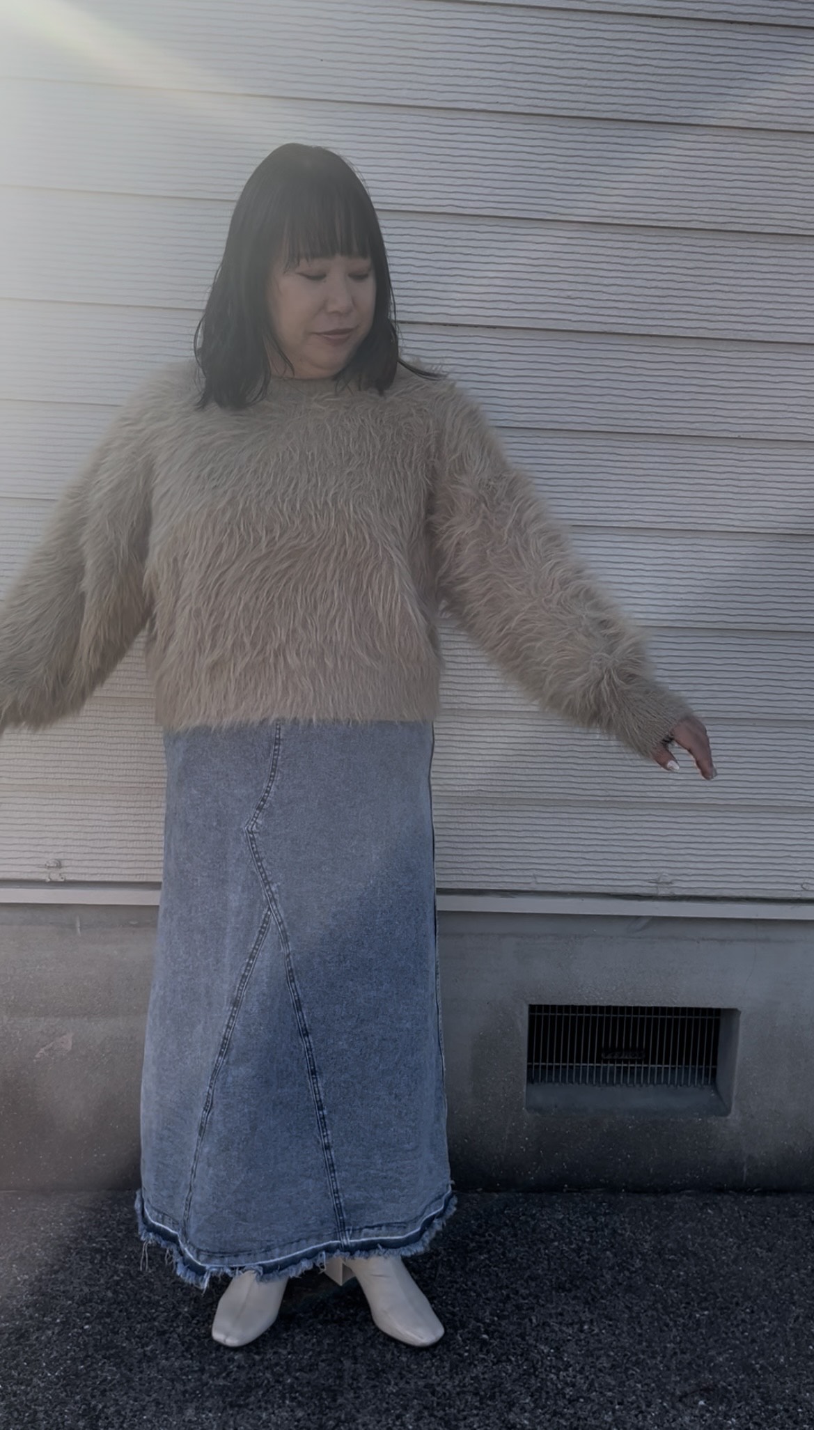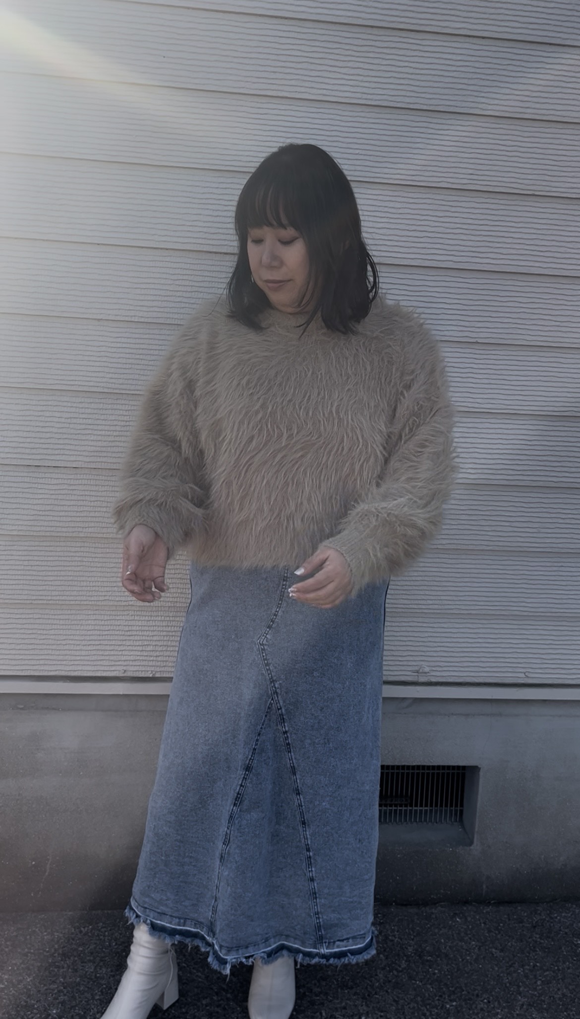 長毛フェザーニットクルーネックプルオーバー