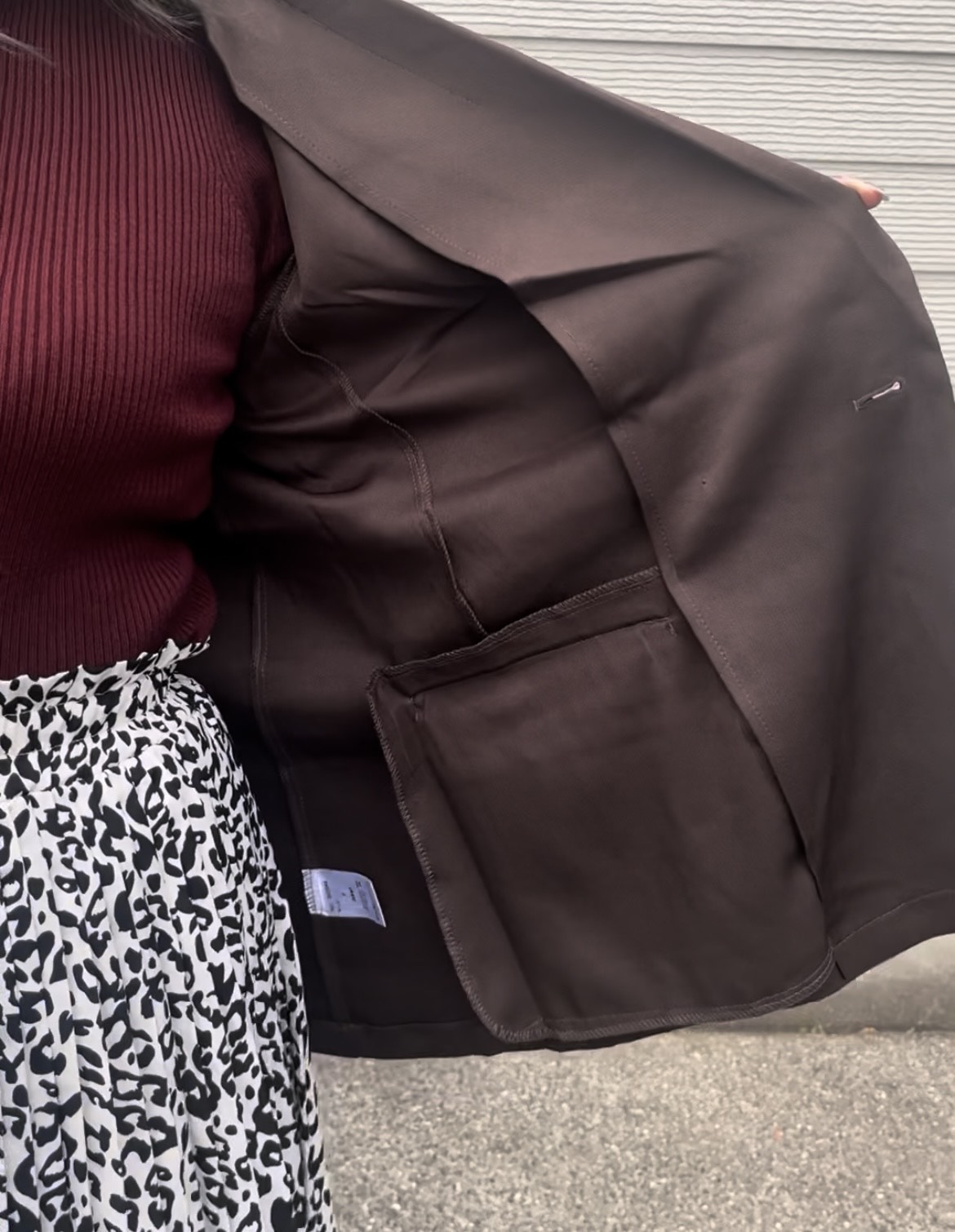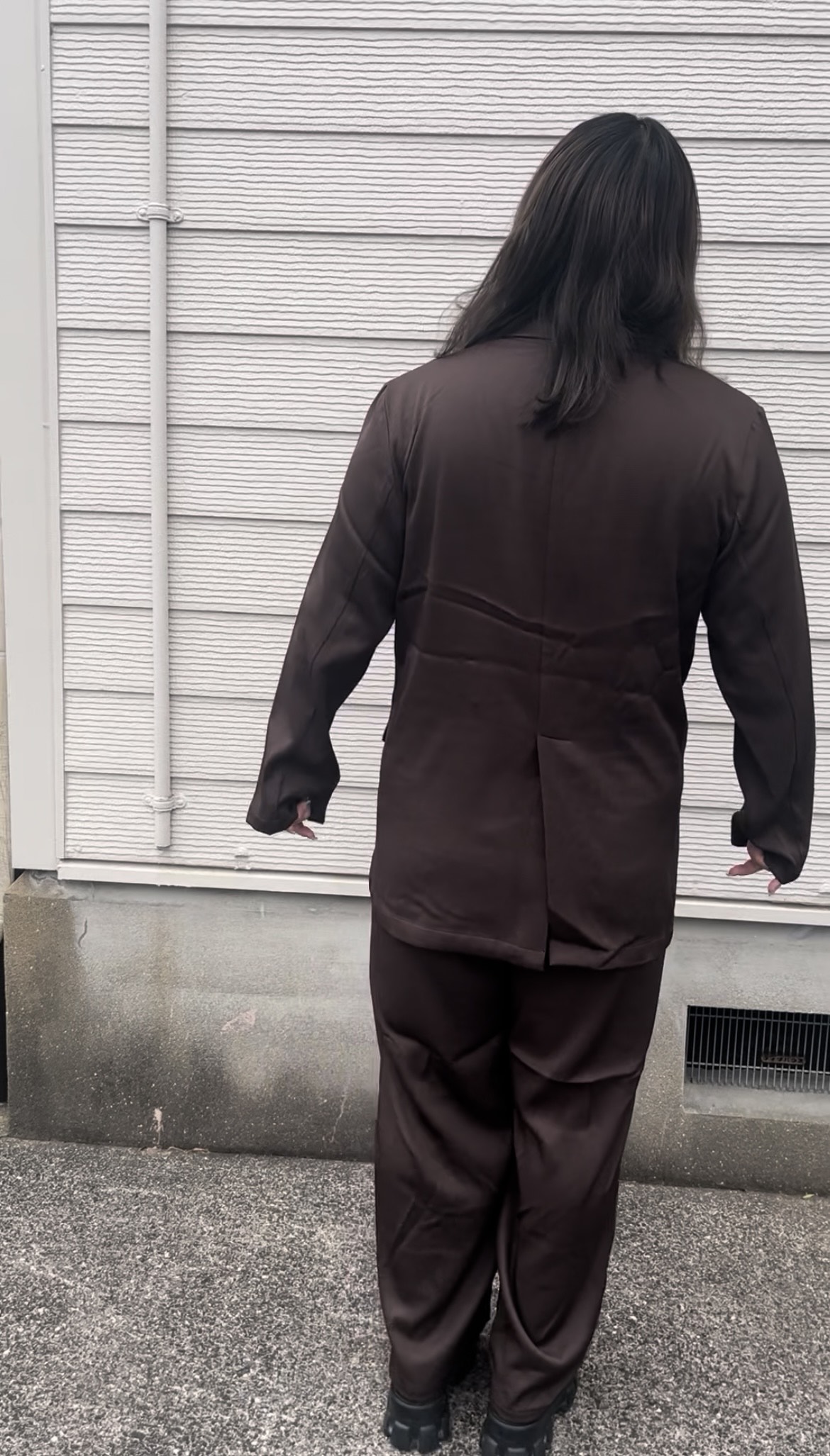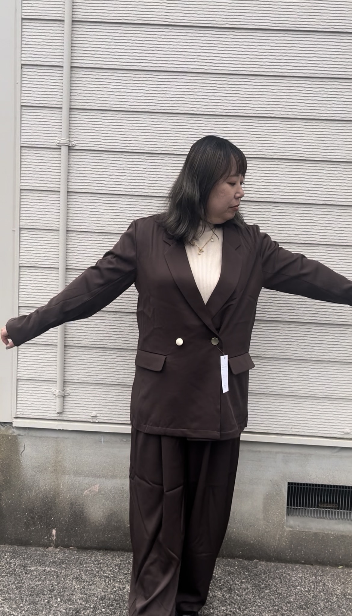 ダブルテーラージャケット ゴールドがアクセントの上品でお祝いなどのイベントやカジュアル使いにも◎ ゆとりあるシルエットで着心地も抜群。 コクーンパンツと合わせたらセットアップスタイルの完成です。