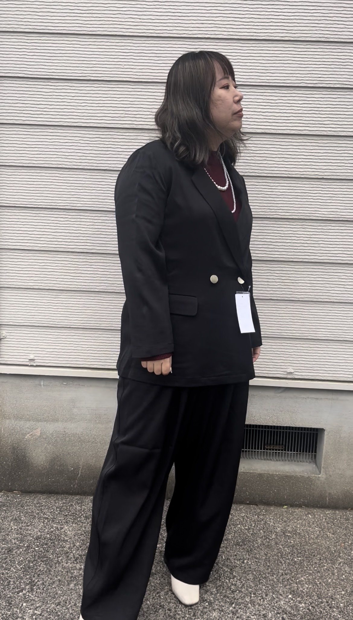 ダブルテーラージャケット ゴールドがアクセントの上品でお祝いなどのイベントやカジュアル使いにも◎ ゆとりあるシルエットで着心地も抜群。 コクーンパンツと合わせたらセットアップスタイルの完成です。