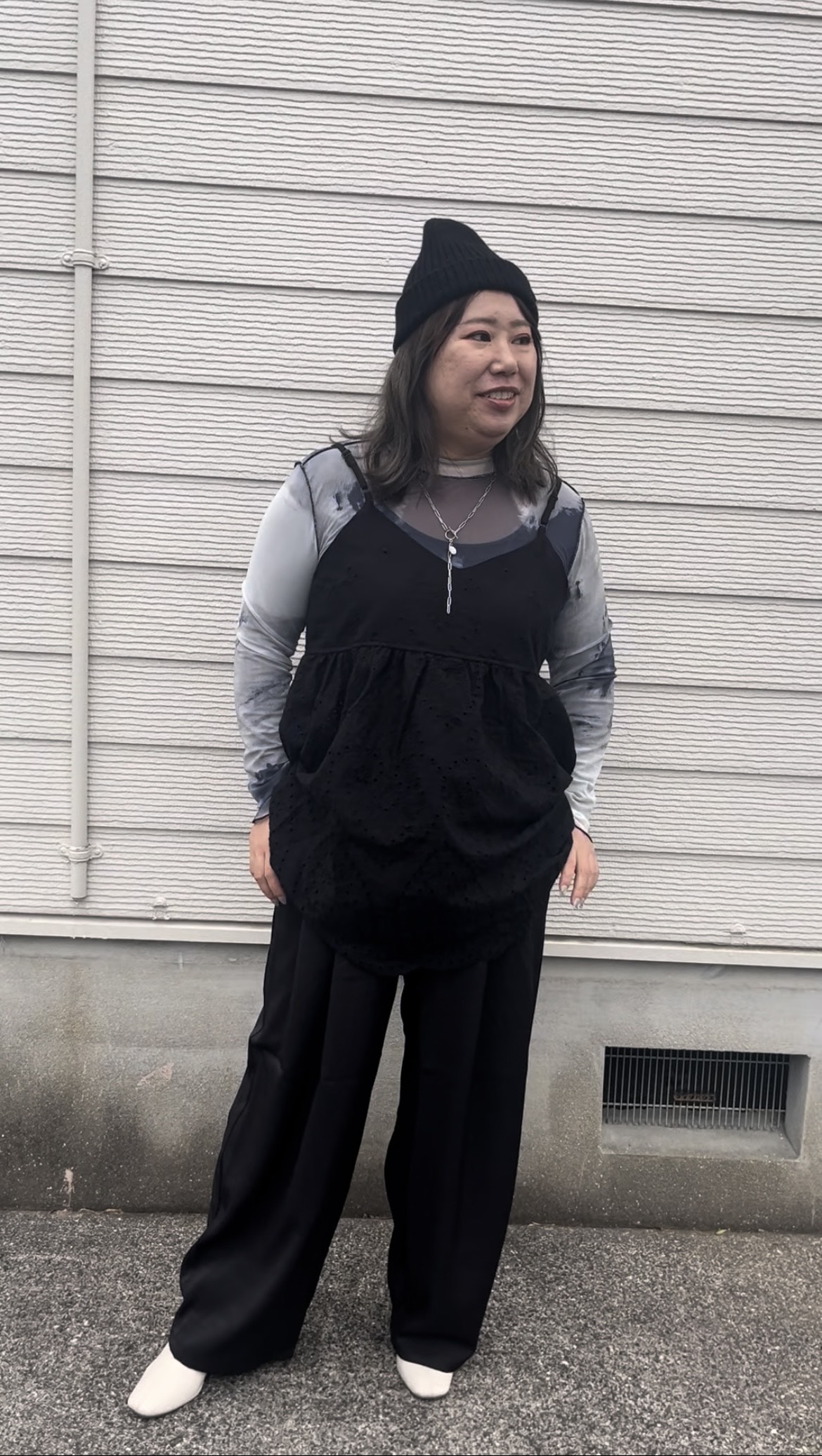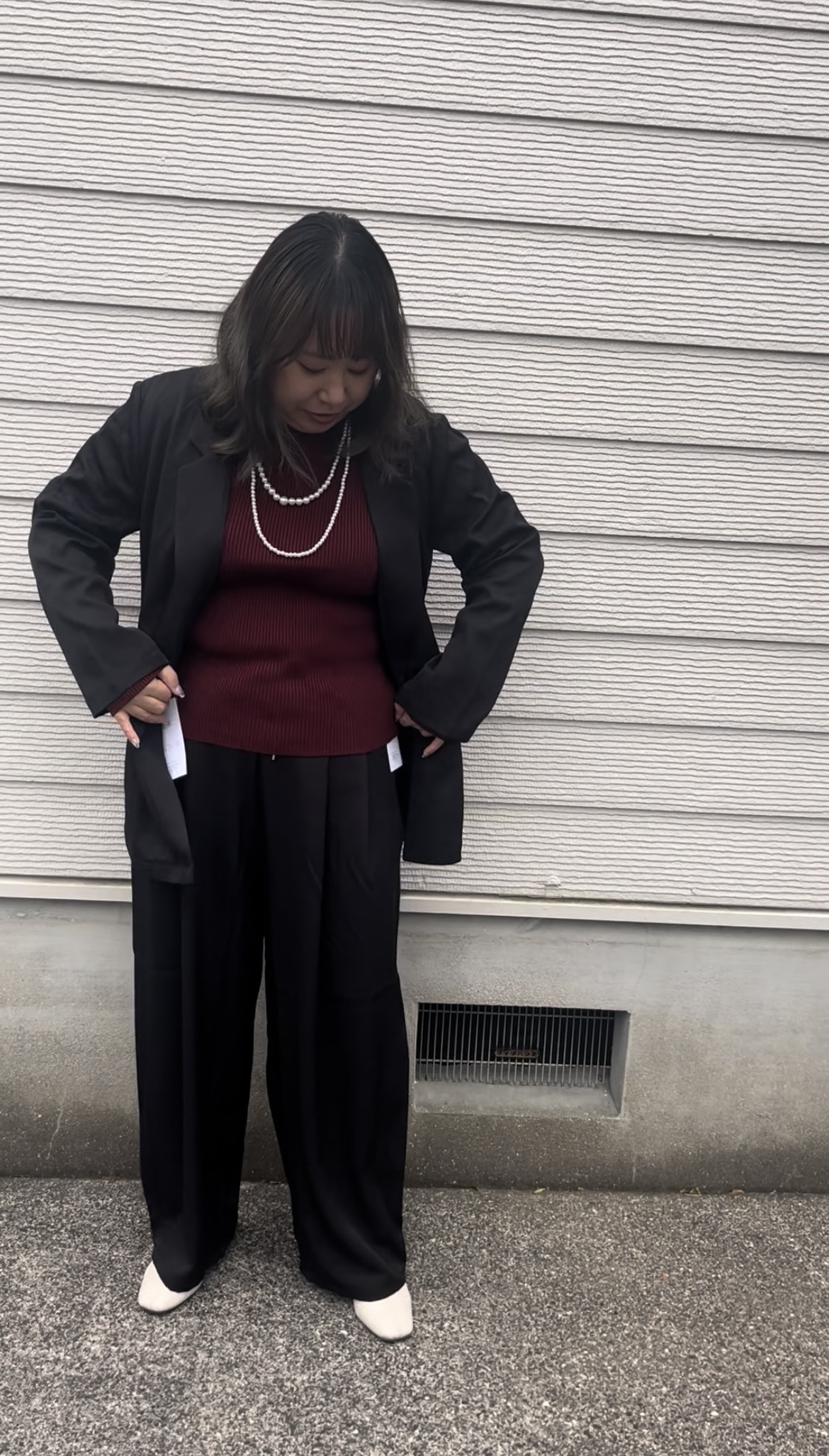 ポリエステルツイル素材を使用したツータック入りコクーンシルエットパンツ。 程よいボリューム感と落ち感がありリラックス感のある履き心地のいいパンツです。 ウエストもゴムなのでゆったり着用できます。 テーラージャケットと合わせたらセットアップスタイルの完成です。 卒業式や入学式にもオススメです。