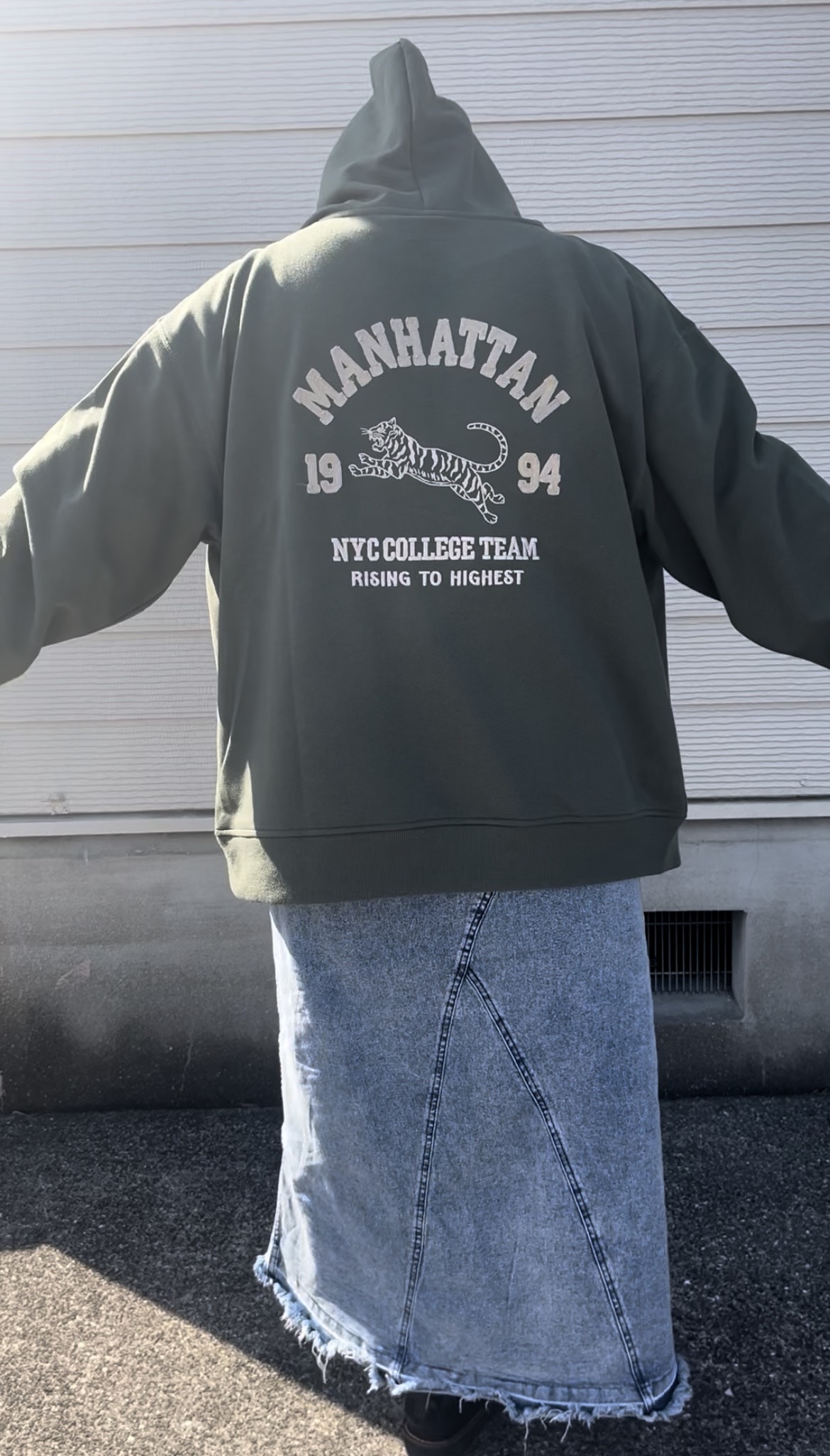 フロントにワンポイントロゴ 虎柄にカレッジロゴが映える 摩擦に強く肌触りのいい素材 メンズライクが好きな女性にもピッタリ