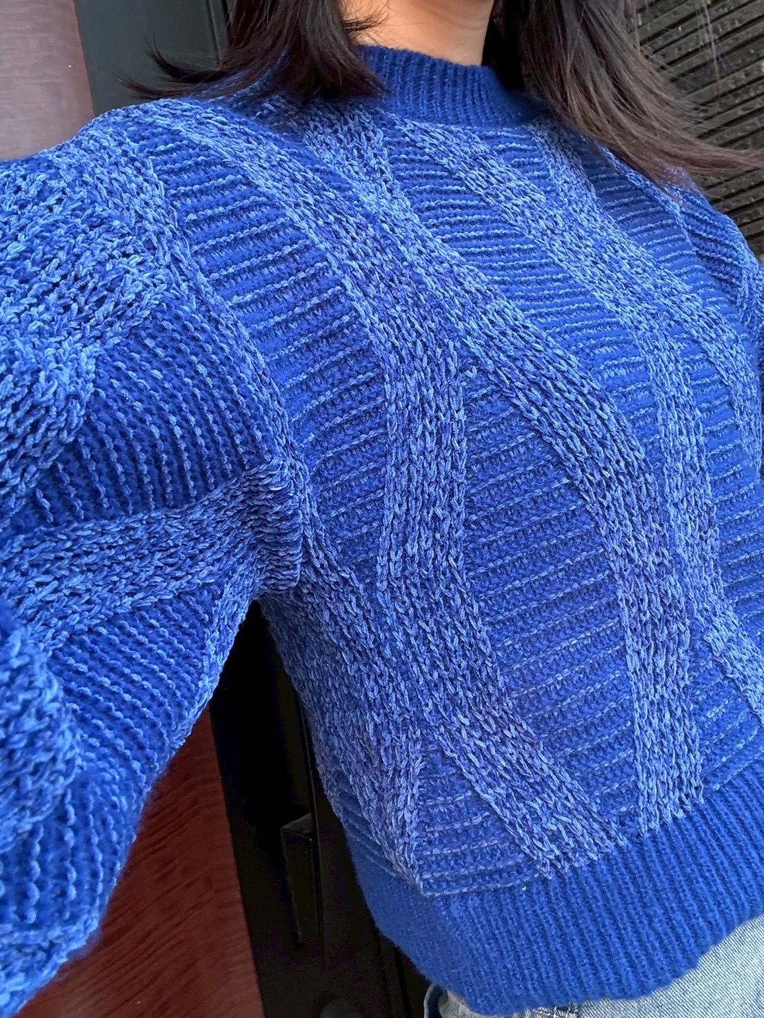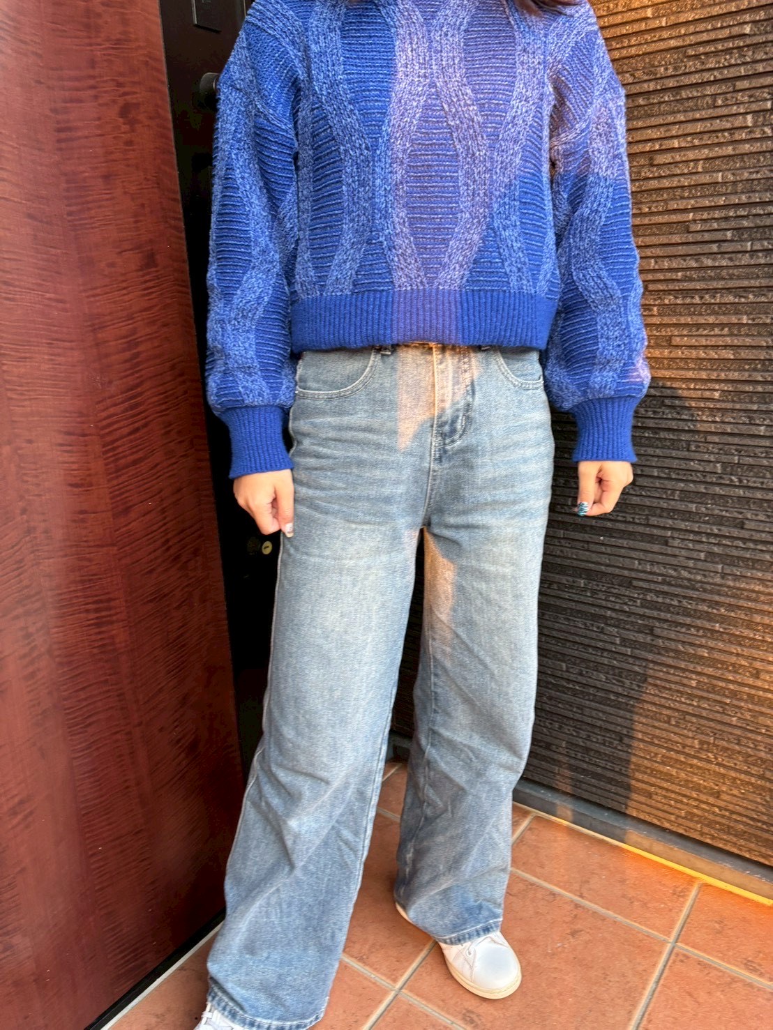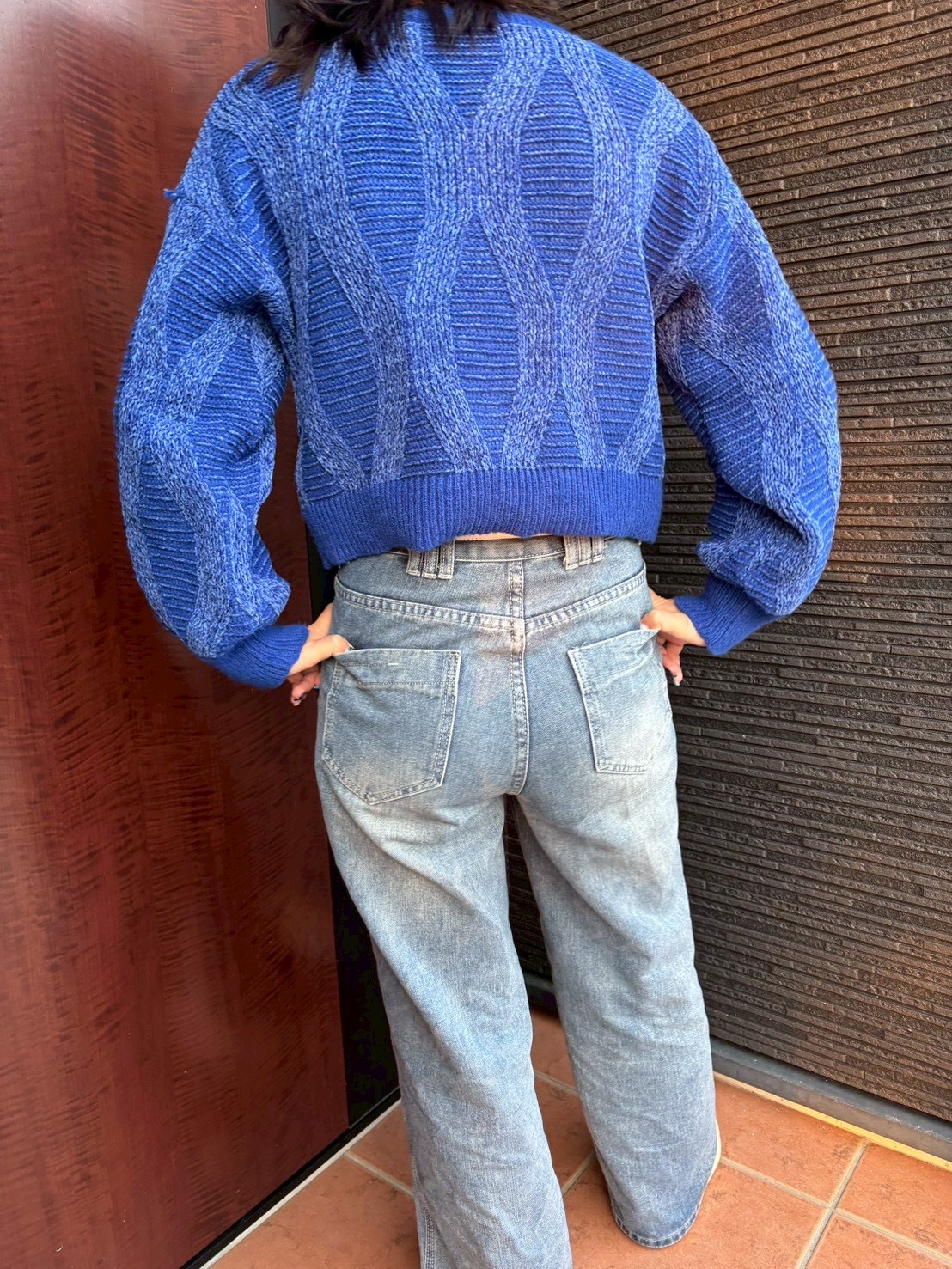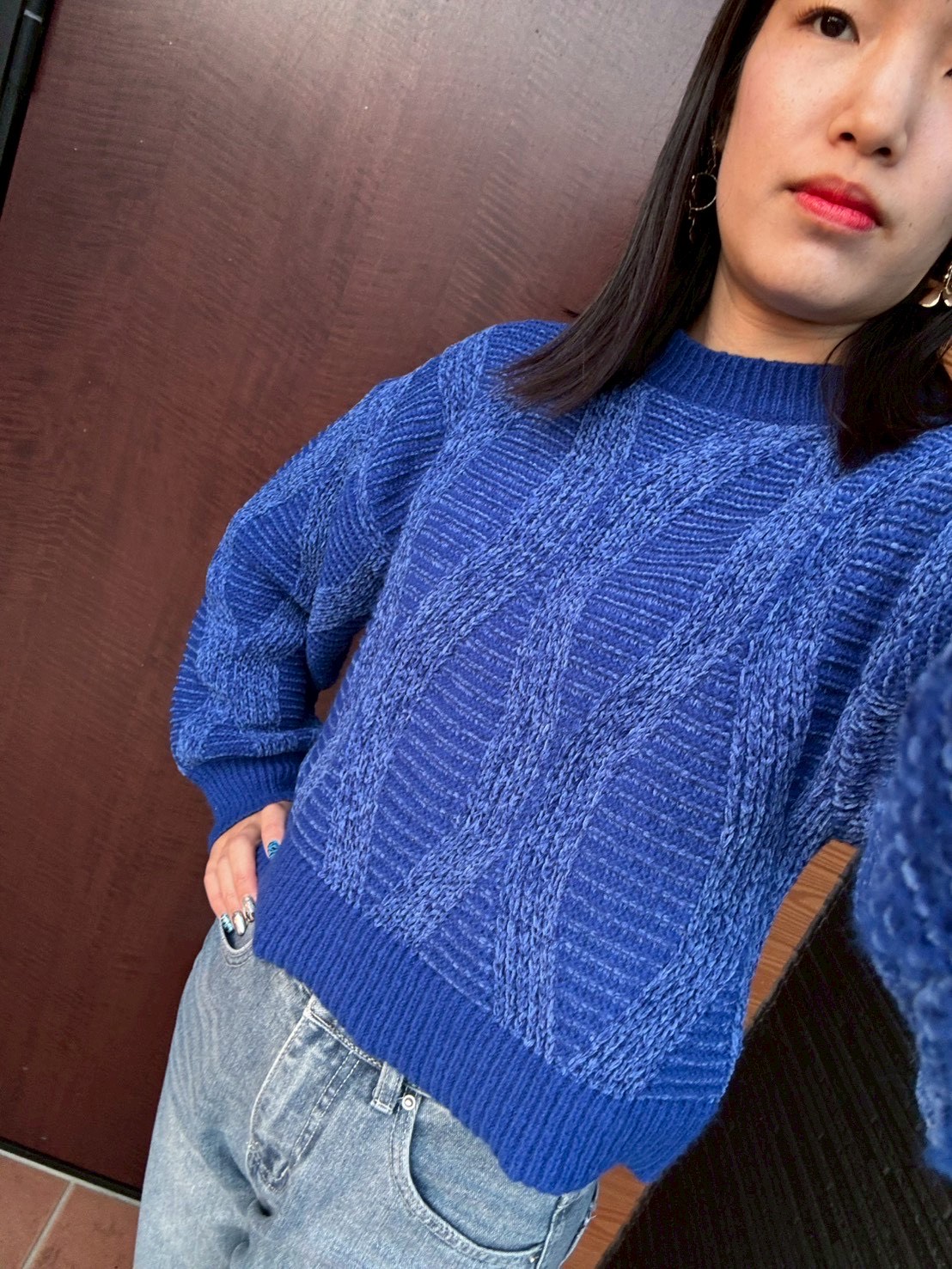 変形ケーブル編みが目を惹くショート丈ニット。 ふんわりとした5ゲージの糸を使用し程よいボリューム感です。 ボトムやワンピースとのレイヤードにも好相性 シンプルながらも存在感のあるデザインで着るだけでトレンド感をプラスしてくれます。
